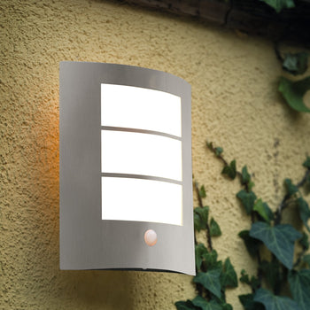 Sold out - Eglo City IP44 Curved PIR Stainless Steel Outdoor Wall Light