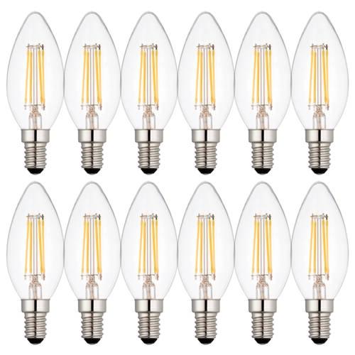 12 x E14 LED Dimmable Lamp/Bulb Candle Filament 4W (25W Equivalent)