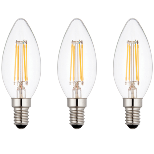 3 X E14 LED Dimmable Lamp/Bulb Candle Filament 4W (25W Equivalent)