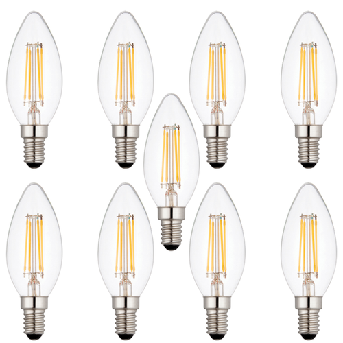 9 x E14 LED Dimmable Lamp/Bulb Candle Filament 4W (25W Equivalent)