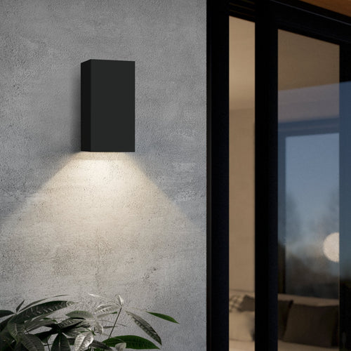 The EREMITANA-Z exterior LED wall light is from the Connect. Z Smart home range. The product features a square, zinc-plated metal body in black. The included LED GU10 lightbulbs produce a pleasant light that can be adjusted and cast an indirect light on the wall due to the up and down design. There is a choice between warm white, neutral white and cool white light and over 16 million colours. The lightbulb is controllable using a free app (AwoX Home Control), which also offers other features such as brightness adjustment, timer operation, presence simulation and many more. The light is controlled via Bluetooth and ZigBee 3.0 and can be operated using compatible voice assistants. The Smart lightbulb is controlled with a remote, which is purchased separately. The wall light has IP55 protection against dust and low-pressure water jets and is suitable for outdoor use. With the product's modern style, the exterior wall light blends into any outdoor area, whether on the wall, entrance area or the terrace.