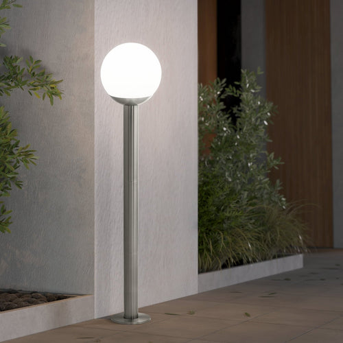 The NISIA-Z exterior LED pathway light is a part of the Connect. Z Smart home range. The product features a stainless steel post and a white spherical plastic head. The product includes a Smart home E27 lightbulb that is fitted inside the body and produces a pleasant warm white light that can be adjusted as required. You can choose between warm white, neutral white, cool white light and a wide range of RGB colours. The LED lightbulb is controllable using a free app (AwoX HomeControl), which also offers other features such as brightness adjustment, timer operation, presence simulation and many more. The light uses Bluetooth and ZigBee 3.0 and can also be operated with compatible voice assistants. The Smart pathway light is also controllable by remote control, which is purchased separately. The light is suitable for outdoor use due to its IP44 protection against spray water. Due to the classic design, the product blends into any modern outdoor space, whether on a path, driveway, entrance area or terrace.