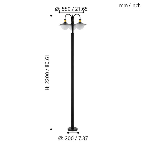 Eglo Sirmione 3 Light Black & Gold Lamp Post - IP44