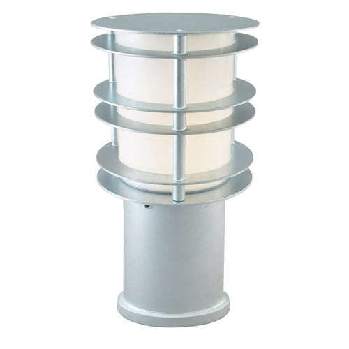 The Stockholm Steel Small Bollard Light by Elstead Lighting is a robust art deco style design made from heavy duty steel in a galvanised steel finish with an opal polycarbonate lens. The Stockholm range comes with a 15 year anti corrosion warranty on the metal parts and a concrete anchor kit as standard. The Stockholm range includes large, medium and small bollards, and is also available in a black powder coated finish, and in a beautiful wood and metal design in either black or galvanised steel (please note the small sized bollard is not available in the wood and metal design).