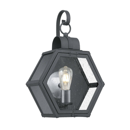 Elevate your outdoor space with the Heath 1 Light Medium Black Outdoor Wall Lantern. Designed with a striking hexagonal silhouette, this lantern features a durable aluminum frame and clear seeded glass, creating a captivating interplay of light and shadow. The domed roof and gracefully curved arm add a touch of sophistication, while the Mottled Black finish enhances its rustic appeal. Engineered for reliability with an IP44 rating, the Heath lantern is bui Light to withstand the elements. Shop with confidence from the UK’s leading lighting specialists and enjoy free 90-day UK returns.