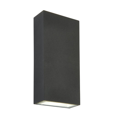 The Morti twin is a premium die cast aluminium LED wall light which features and up and down light wash effect. This fitting provides a high light output of 720 lumens, comes complete with LED driver and is finished in textured anthracite grey paint.