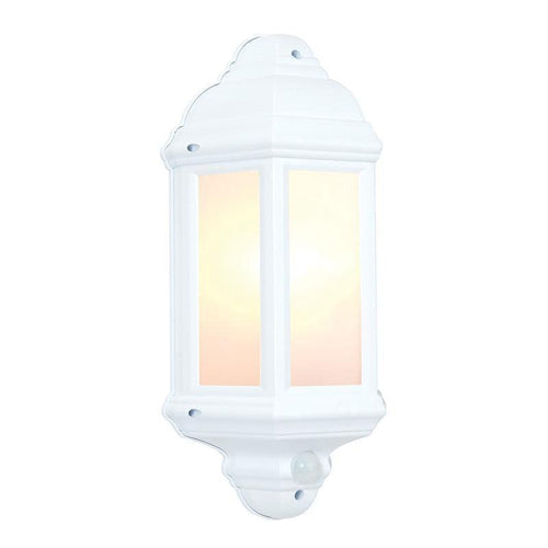 This Halbury PIR Matt White Textured Finish Outdoor Wall Light from Endon Lighting combines form and function to give you a discreet, elegant and quality product. Finished in matt textured white, with polycarbonate lens, and a traditional design combined with the PIR sensor, this lantern is perfect for you if you're looking for decorative outdoor lighting with the added benefit of security. The Halbury is also available as an LED unit and in a matt black finish.