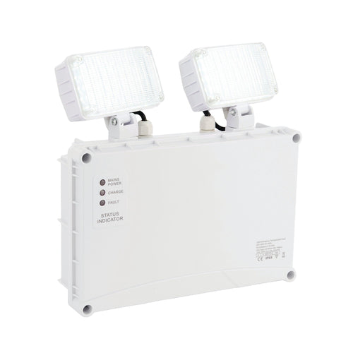 The Sight Twin Spot is a non-maintained emergency LED fitting for indoor and outdoor use. Complete with a fault alarm which will beep and flash when not installed correctly. Each head is fully adjustable for angled illumination when needed. The two 2W Hi Power LEDs provide 570 lumens for up to 3 hours when power is lost.