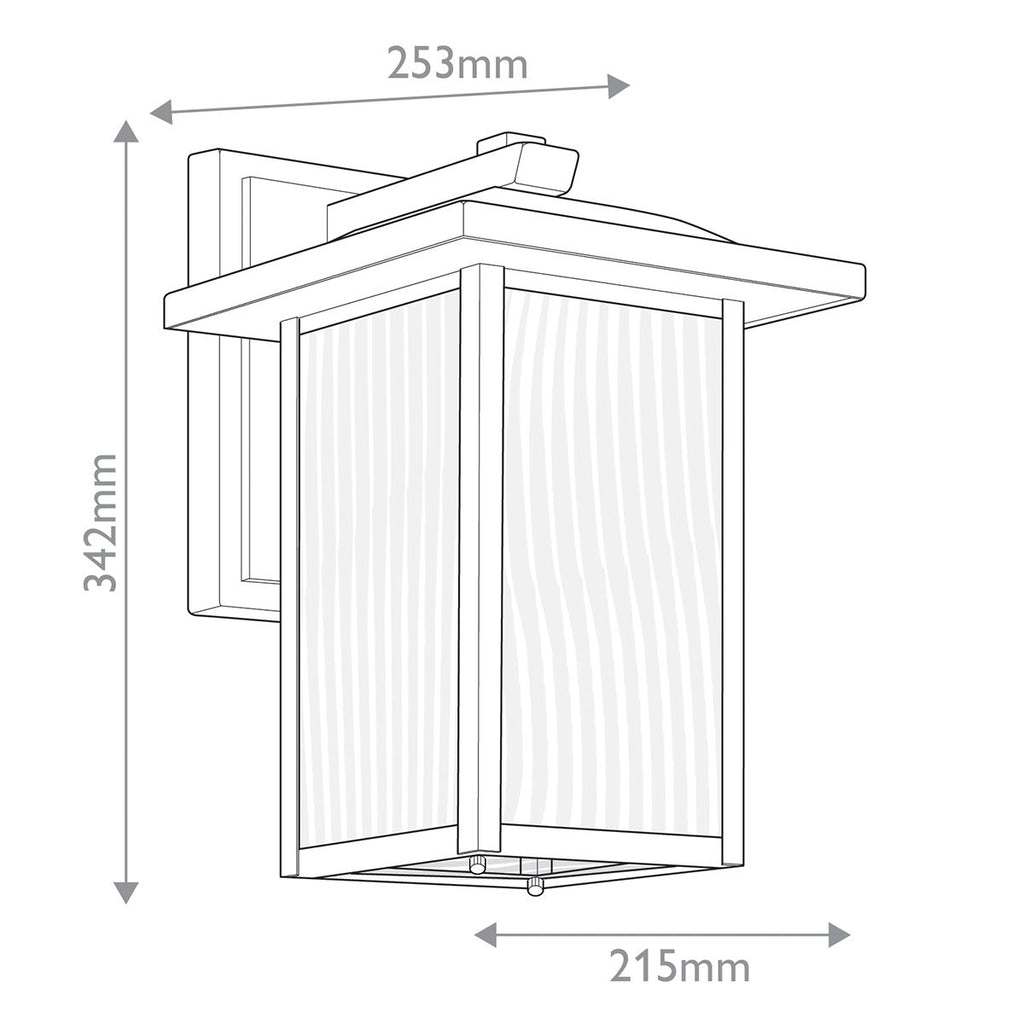 Elevate your outdoor space with the Capanna 1 Light Medium Outdoor Wall Lantern. This refined fixture reimagines the classic lantern with clean, squared edges, a distinctive capstone finial, and a sophisticated textured black finish. The artfully crafted waterfall glass diffuses light beautifully, making it an ideal choice for contemporary, transitional, or arts & crafts homes. Shop with confidence from the UK’s leading lighting specialists and enjoy free 90-day UK returns.| Projection | 25.3cm/10" |