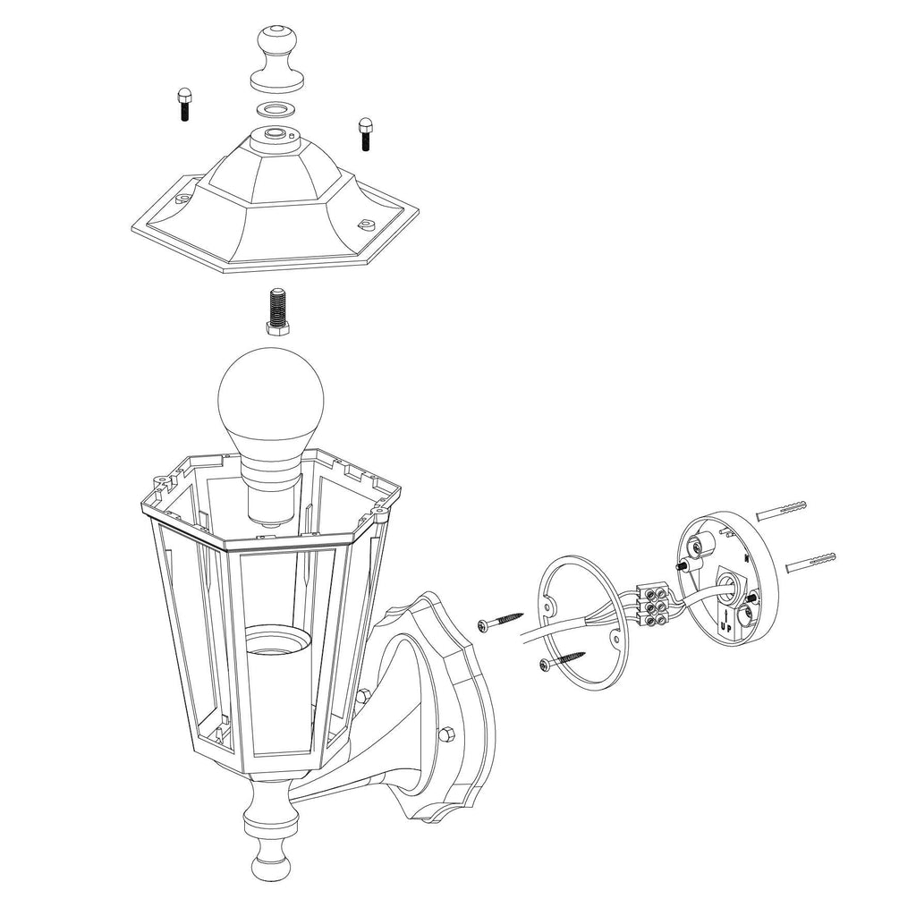 The (upright) lantern-style LATERNA 5 exterior wall light has a cast aluminium body in white with clear glass panes. The product is suitable for outdoor use due to its IP44 protection against spray water. The classic design blends into outdoor spaces with a wide range of styles and compliments settings such as traditional-style or art nouveau city villas – the perfect wall light for house entrances, terraces or the balcony. The pictured lightbulb is not included. The product has an E27 lamp holder and requires an E27 lightbulb.