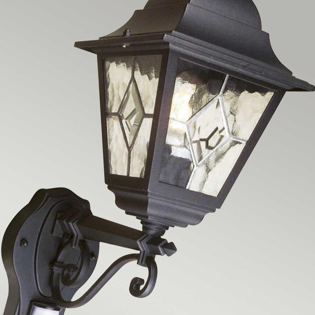 This Norfolk Black Finish Outdoor PIR Wall Lantern from Elstead Lighting is part of a lovely range of traditional lanterns, finished in satin black, with five separate glass panels which are hand-leaded together to give you elegance and sophistication with the emphasis on light. This, combined with elegant detailing to the metalwork, mean the Norfolk range will add a touch of class to your outdoor space. The range includes, lamp post lanterns, wall, pedestal, pillar and pendant lanterns, all with a 5 year anti corrosion guarantee, as well as a PIR lantern with a motion sensor which is guaranteed for 2 years.