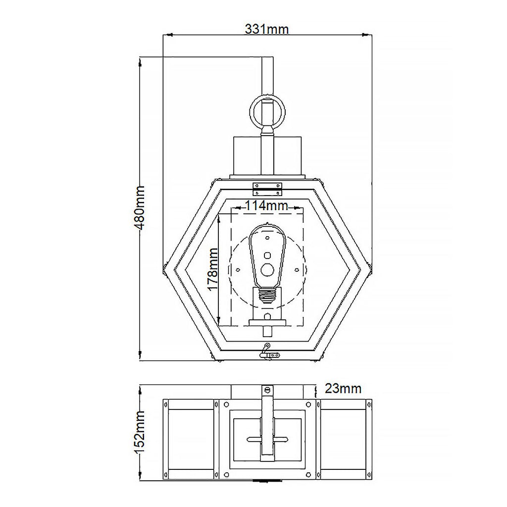 Elevate your outdoor space with the Heath 1 Light Medium Black Outdoor Wall Lantern. Designed with a striking hexagonal silhouette, this lantern features a durable aluminum frame and clear seeded glass, creating a captivating interplay of light and shadow. The domed roof and gracefully curved arm add a touch of sophistication, while the Mottled Black finish enhances its rustic appeal. Engineered for reliability with an IP44 rating, the Heath lantern is bui Light to withstand the elements. Shop with confidence from the UK’s leading lighting specialists and enjoy free 90-day UK returns.Projection | 15.2cm/6" |