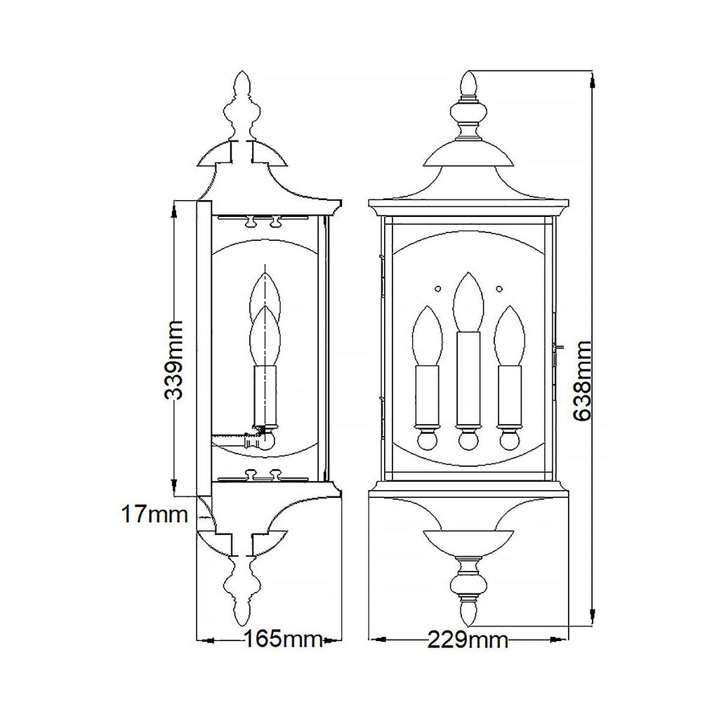 Elevate your home’s exterior with the Market Square 3 Light Bronze Outdoor Wall Light. Crafted from durable solid aluminium and designed with timeless, classic lines, this lantern brings both elegance and reliability to your outdoor space. Its IP44 rating ensures dependable performance in all weather conditions, making it a smart investment for lasting curb appeal. Shop with confidence from the UK’s leading lighting experts and enjoy free 90-day UK returns. Transform your entrance with lighting that makes a lasting impression.Projection | 16.5cm/6.5" |
