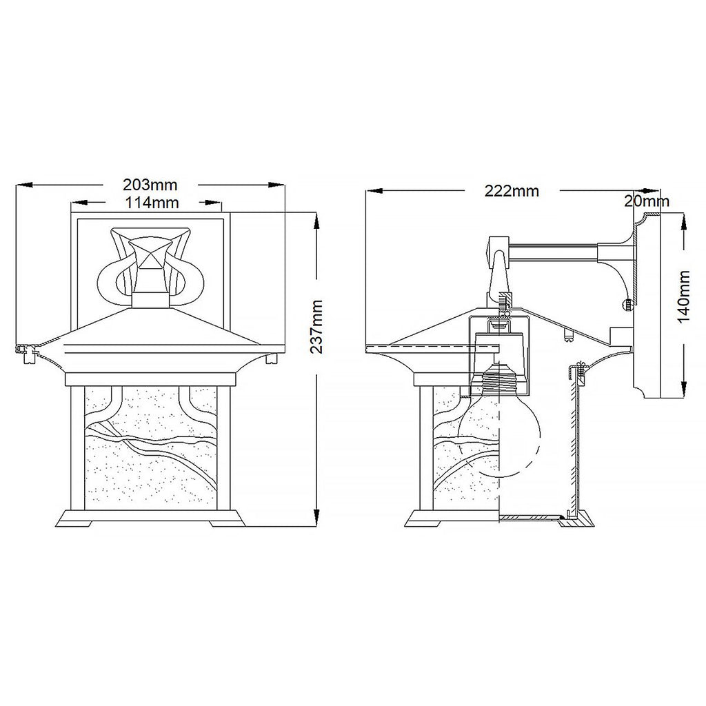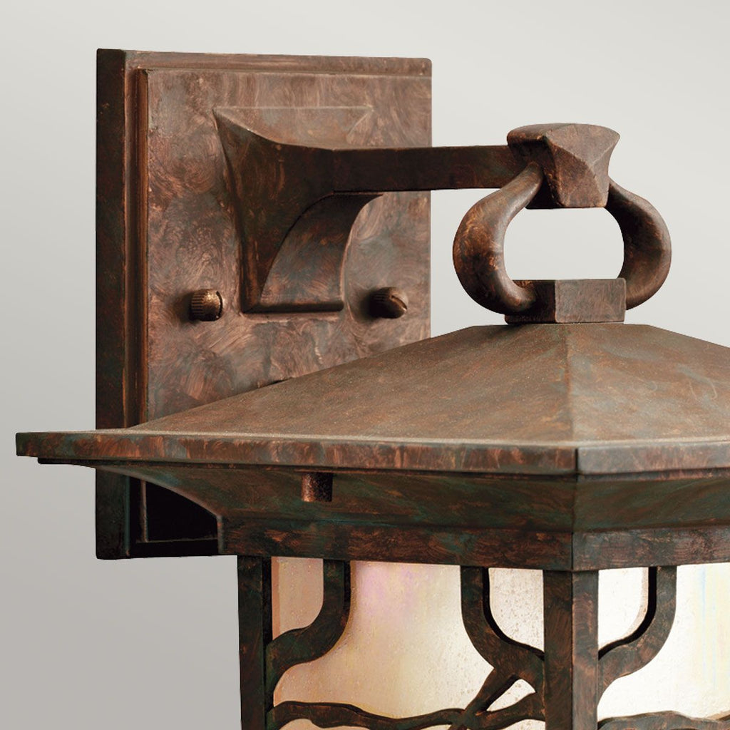 Enhance your outdoor space with the Morris 1 Light Medium Copper Wall Lantern, a stunning piece inspired by Southwest Mission design. Its distinctive trailing pattern, paired with a distressed copper finish and inside-etched, iridescent seedy glass, creates a warm and inviting ambiance that will impress for years to come. Rated IP44 for reliable outdoor performance, this lantern combines style and durability. Shop with confidence from the UK’s leading lighting specialists and enjoy free 90-day UK returns.Projection | 22.2cm/8.7" |