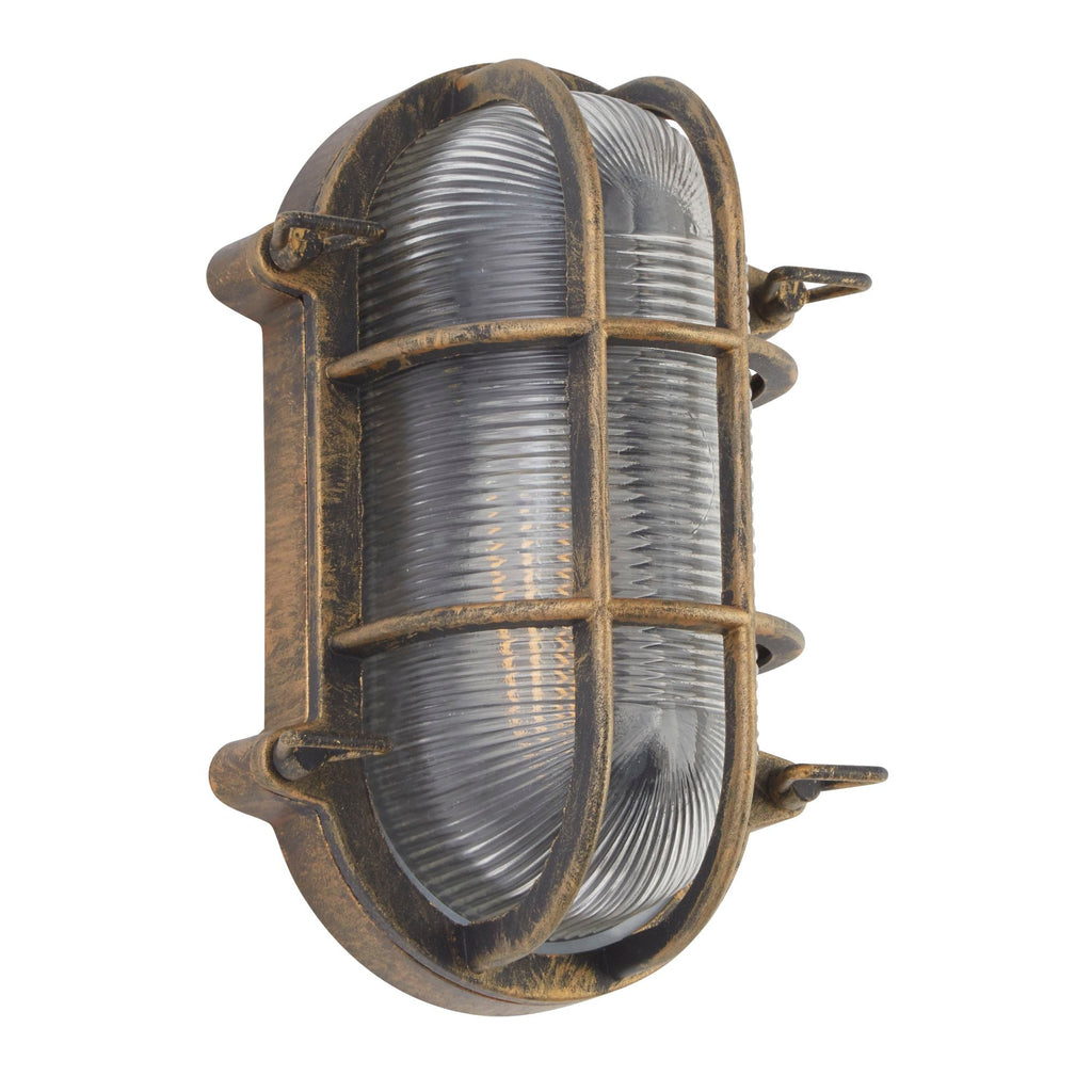 Searchlight Bulkhead Oval Black & Gold Outdoor Wall Light