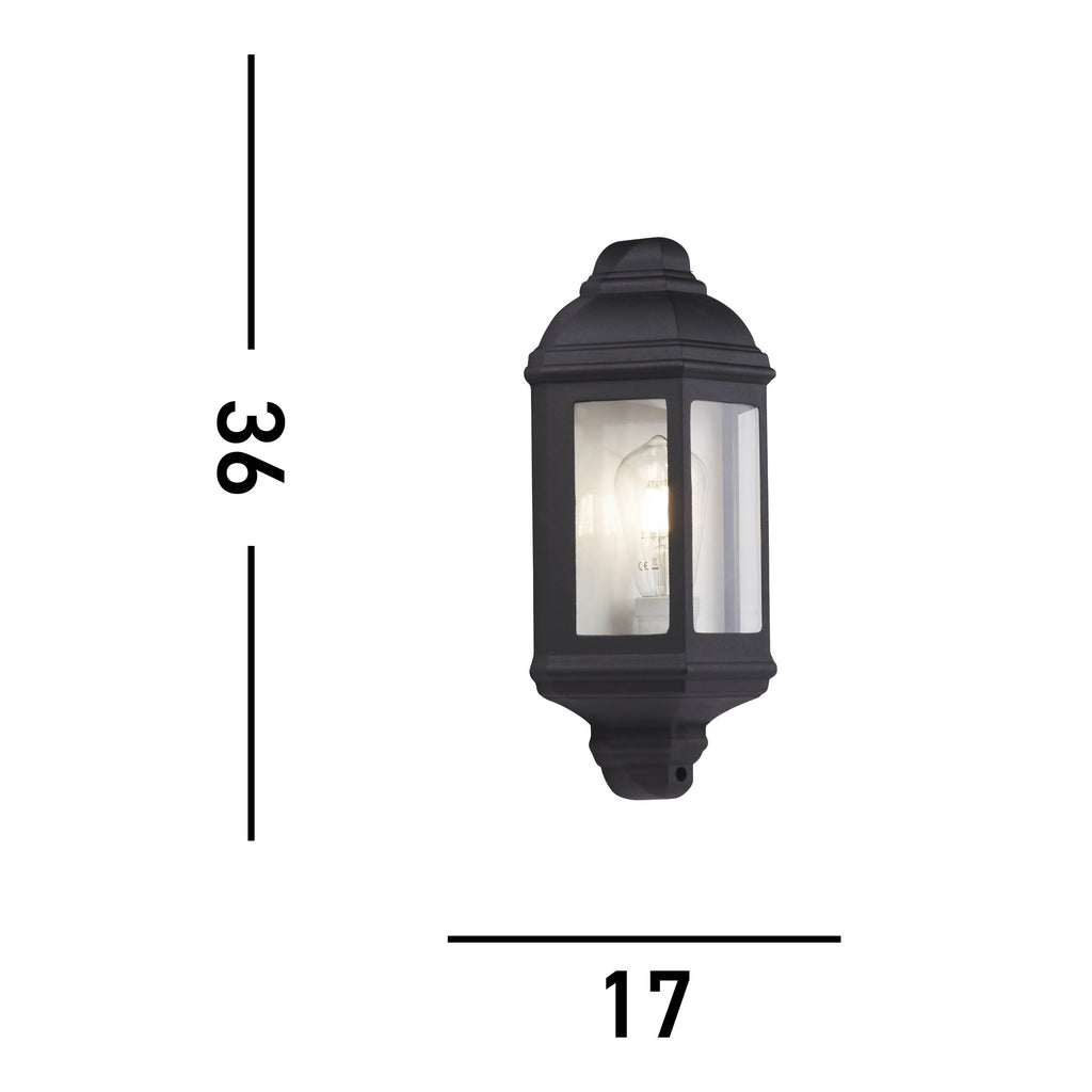 The Maine outdoor wall light is in a lantern style, and is designed to give a stylish finish to any garden, outdoor space or balcony whilst offering the safety aspects of outdoor lighting. Featuring a black finish and exposed glass shade, The Maine outdoor wall light will look great placed outside any home. Its IP44 rating means this outdoor light can withstand the elements.Projection | 10cm/3.9" |