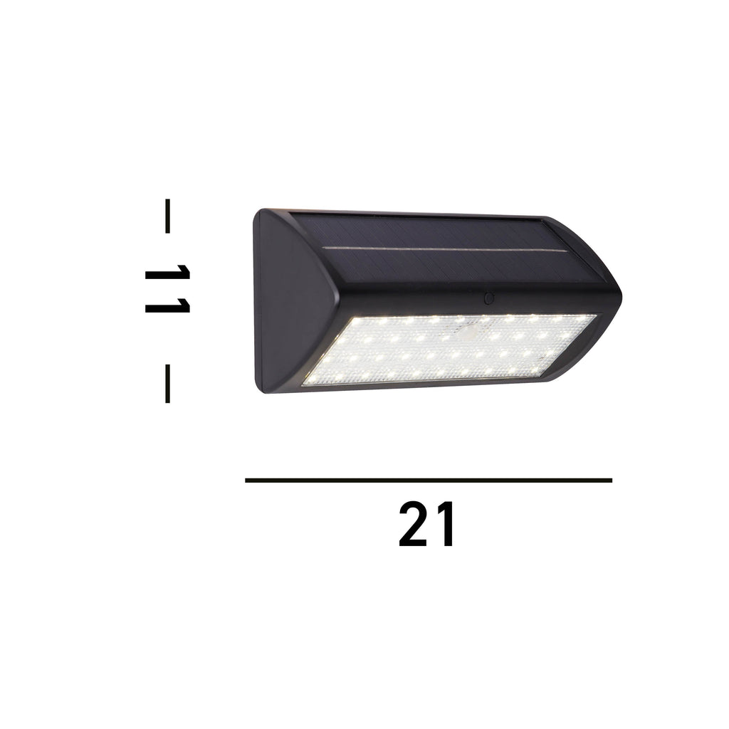 The Solar Outdoor Wall Light with PIR combines convenience, style, and energy efficiency to offer a versatile outdoor lighting solution. Its clear and light grey colour complements both traditional and contemporary outdoor settings, adding a touch of sophistication to your outdoor space. Designed with high-quality ABS and clear polycarbonate, this solar wall light ensures durability and resistance to harsh weather conditions. It is built to withstand the elements, guaranteeing long-lasting performance and reliable illumination in any outdoor environment. Featuring an integrated LED, the Solar Outdoor Wall Light provides energy-efficient lighting. The integrated LED eliminates the need for frequent bulb replacements and consumes minimal energy, resulting in cost savings and reduced environmental impact. With 6 hour charge time for 8 hours usage, this outdoor light is ideal for any garden or balcony.Projection | 9cm/3.5" |
